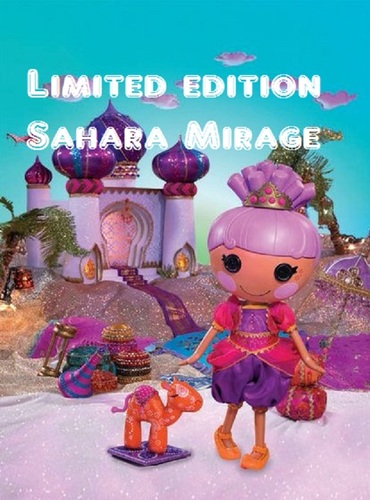 There's wishes in store with the Lalaloopsy Sahara Mirage Doll. Sewn from a real genie's veil, Sahara Mirage is a rare and very special doll who grants wishes to her favourite people. She's mysterious and comes dressed in a beautiful, exotic outfit alongside her faithful pet camel. Lalaloopsy dolls magically come to life and take on the personality of the fabric they were made from. The limited edition Lalaloopsy Sahara Mirage Doll is 30cm tall, made from plastic and fabric, and suitable for ages four and up.